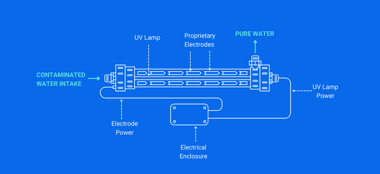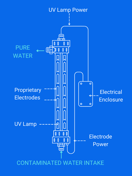 Our technology accomplishes this without the addition of chemicals and is protected by both patents and trade secrets. eAOP® generates an abundance of hydroxyl radicals in water; - even at low dosage, it destroys a wide spectrum of microbes more effectively than UV or Chlorine, including resistant species such as cryptosporidium.